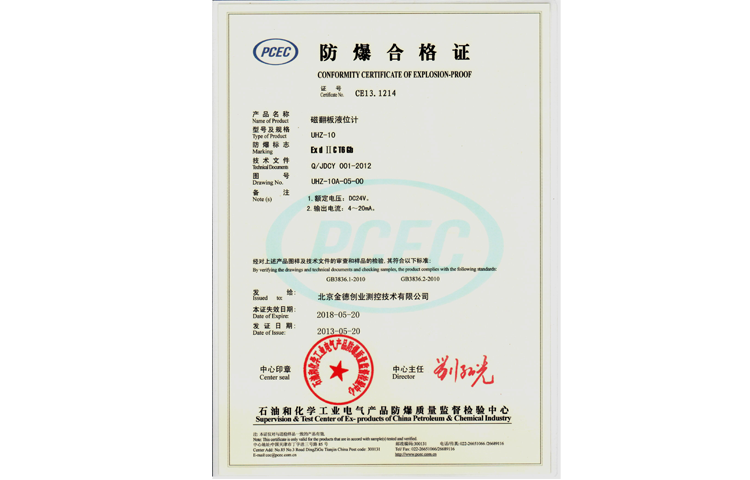磁翻板液位計防爆合格證(隔爆)