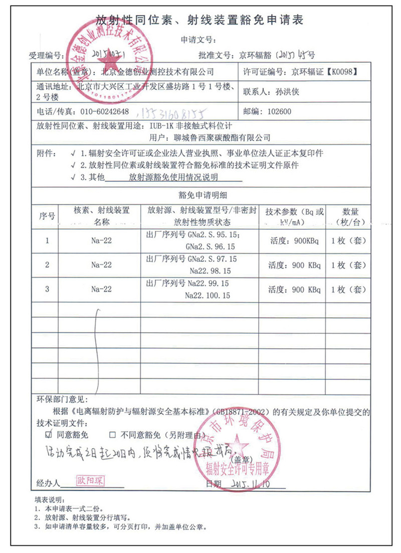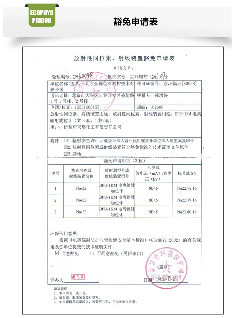 低于國(guó)家標(biāo)準(zhǔn) GB18871-2002《放射性防護(hù)與輻射源安全基本標(biāo)準(zhǔn)》,對(duì)于人體無(wú)傷害,對(duì)環(huán)境無(wú)污染,不受國(guó)家環(huán)保及公安,衛(wèi)生等各個(gè)部門的監(jiān)控。